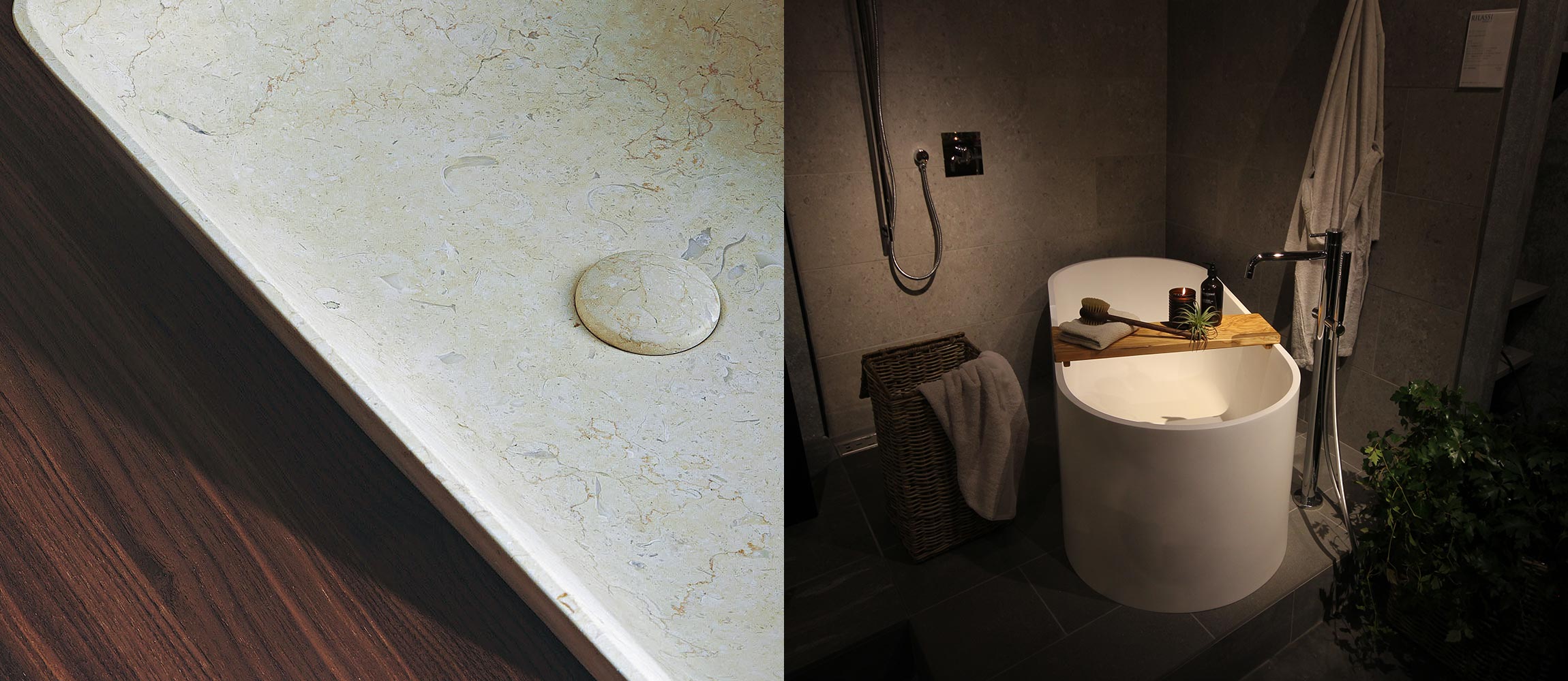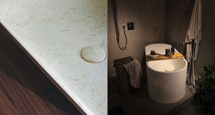 大理石を使ったオリジナルの洗面ボウルや