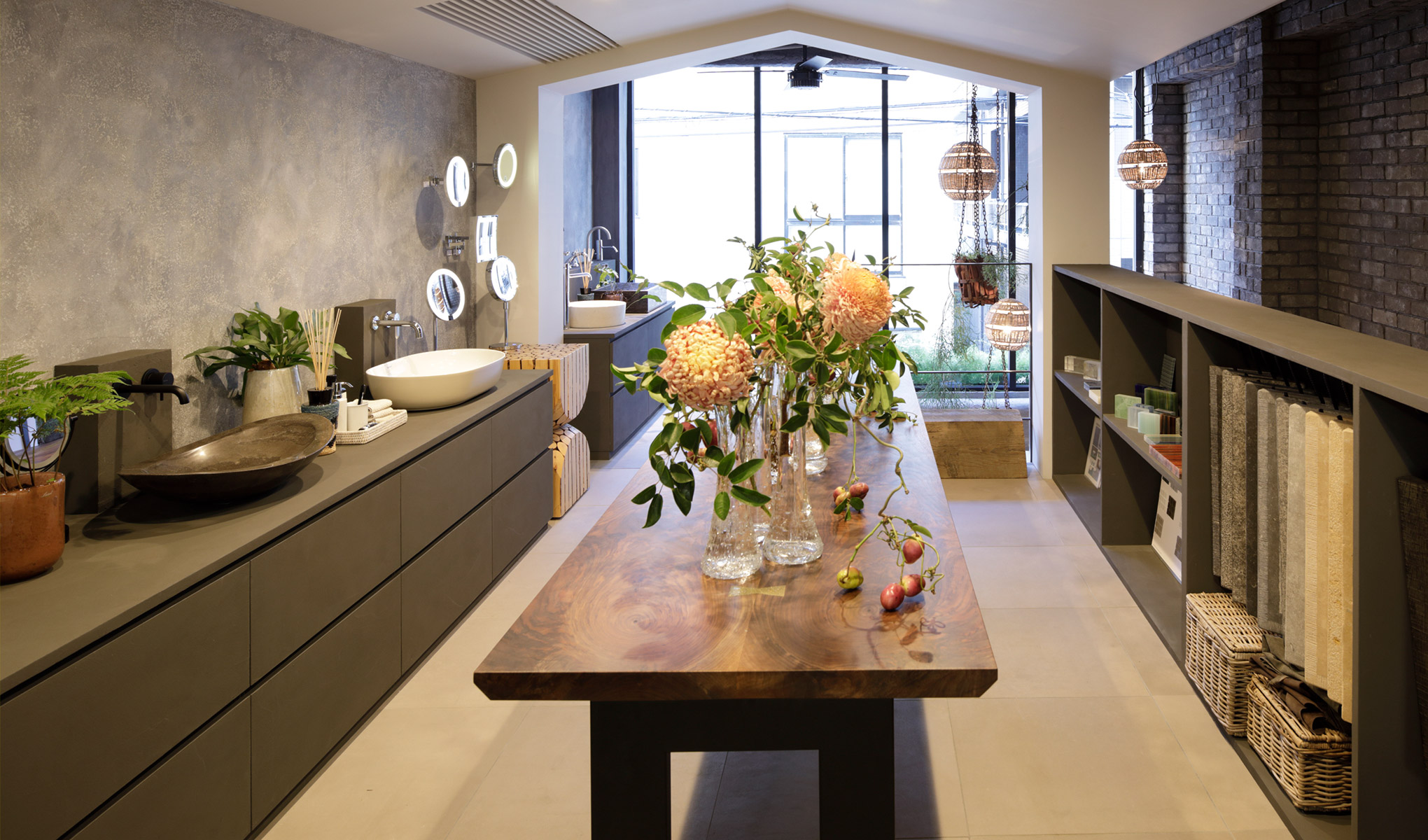 蔵前にあるショールームには、ヨーロッパのサニタリーブランドの商品を多数展示しています。1Fには自然を感じさせるベルギーデザインブランド「SEMPRE」の花器をメインとしたインテリア雑貨、そしてフィッシュ&チップスのショップも営業しています。どうぞお気軽にお越しくださいませ。